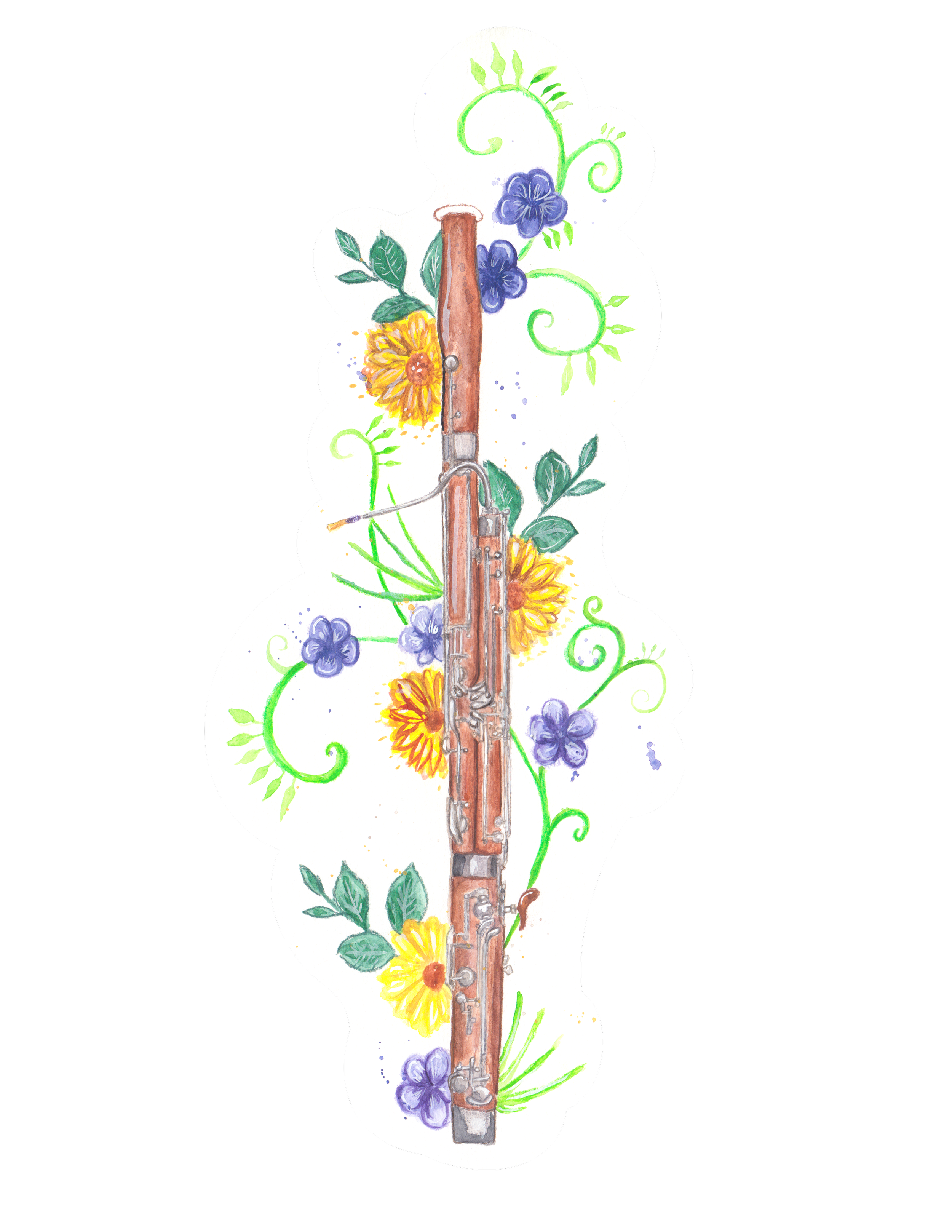 The first artwork of the Botanical Instrument series is titled Horn Bouquet. I was inspired by the regal sound of the horn. My favorite characteristic about the horn is how, in an orchestra, it serves as a bridge between the woodwinds and brass sections. Although I would advise against putting a bouquet in an actual horn, satisfying this intrusive thought through an artwork is a beautiful compromise.