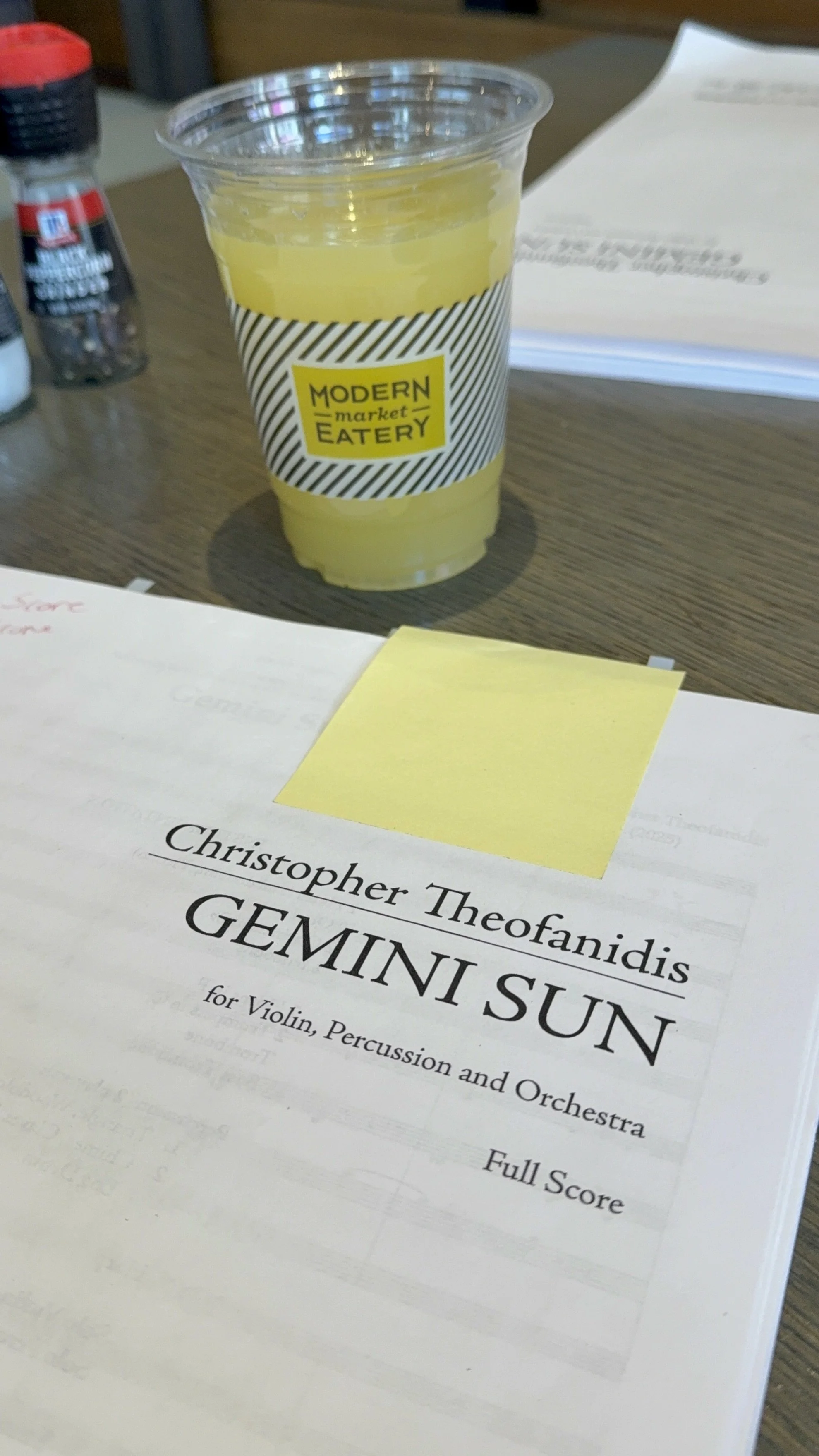 Theofanidis describes the image of Gemini, or twins, as central to the work. That feels apt. The concerto is not simply a solo violin with percussion accompaniment, nor is it a novelty pairing built around contrast alone. It is a study in relationship: two solo presences speaking in different languages, learning how to reflect, challenge, echo, and transform one another across the course of the piece.