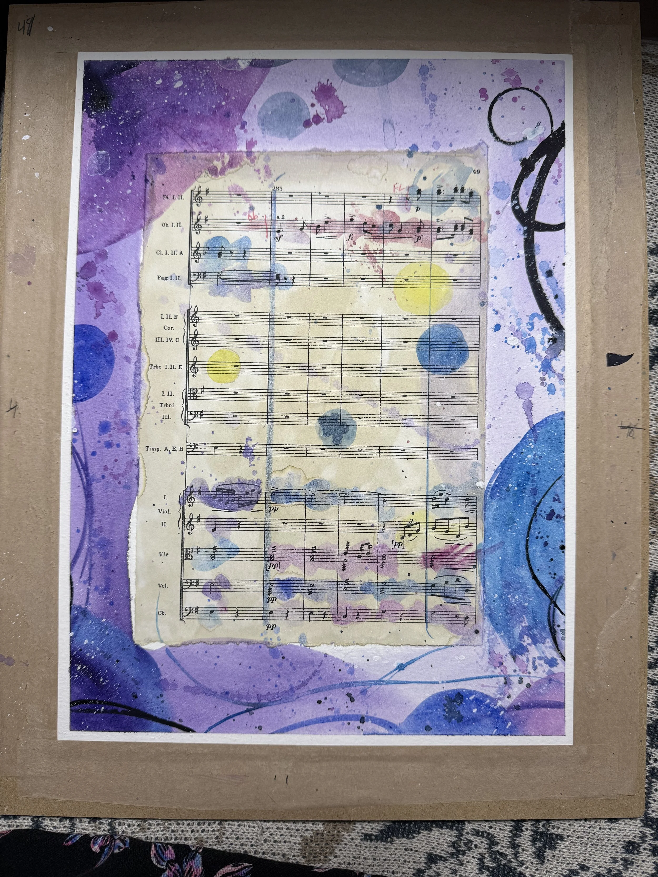 I had a successful pilot project with Mozart’s Symphony No. 38. Making a series of artworks using each page of the first movement of his symphony.